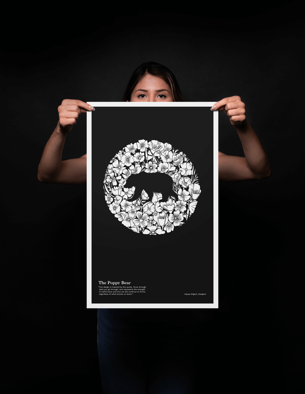 This design is inspired by the quote ‘grow through what you go through’ and represents the strength of Californians and how we will continue to thrive, regardless of what knocks us down.
